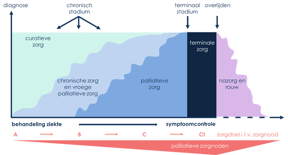 Wanneer men spreekt over een palliatief zorgtraject, kan men verschillende fases onderscheiden. Onderstaande afbeelding kan dit ook visueel ondersteunen.